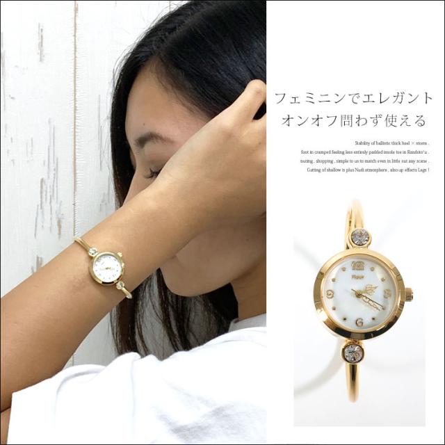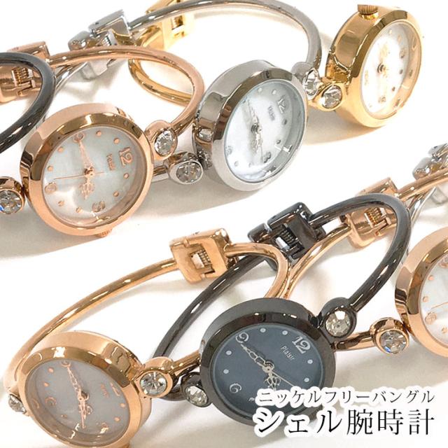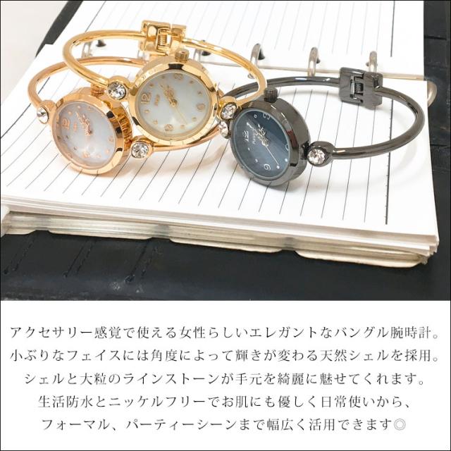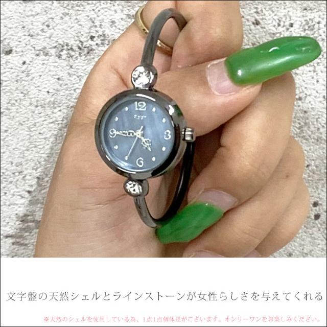平日12時 平日祝9時即出荷 腕時計 レディース 防水 バングル かわいい ブレスレット 時計 ウォッチ おしゃれ ブランド 3気圧 シェル キラキラ 小ぶり ニッケルフリー ブレスレットウォッチ 文字盤 見やすい ラインストーン 女性 シルバー ゴールド プレゼント 黒
