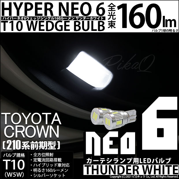 LED,ピカキュウ,LEDバルブ専門店,SMD,T10ウェッジ,HYPER NEO 6ウェッジシングル球,サンダーホワイト,カーテシランプ,ドアカーテシランプ,トヨタ,210系クラウン,クラウン,アスリートハイブリッド,TOYOTA,CROWN ATHLETE HYBRID,210系,AWS210,前期