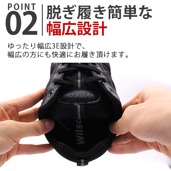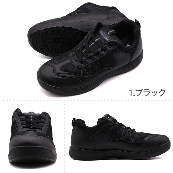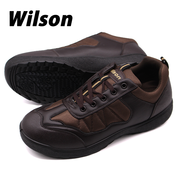メンズ スニーカー 靴 黒 ブラック 茶 ダークブラウン 低反発 クッション性 幅広 3E 大きい 滑りにくい 防水 雨 雨の日 通勤 通学 ウィルソン Wilson 1901