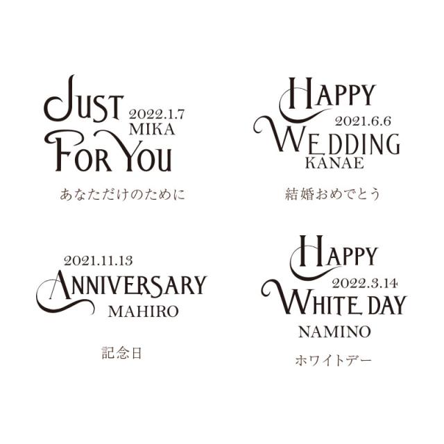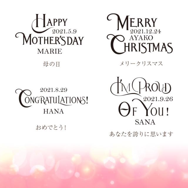| 名入れ | プリントするお名前、日付は「記入欄」へご記入下さい。 ローマ字のみ ※日本語不可。 ※文字数は10文字までとさせていただきます。 |