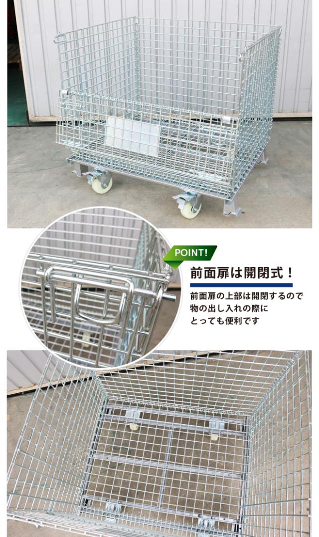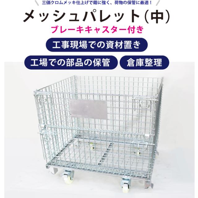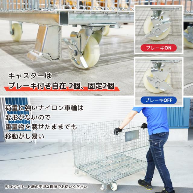 メッシュパレット 中 ブレーキキャスター付き 幅1040×奥行820×高さ910mm 業務用 メッシュボックス 網パレット パレティーナ KIKAIYA