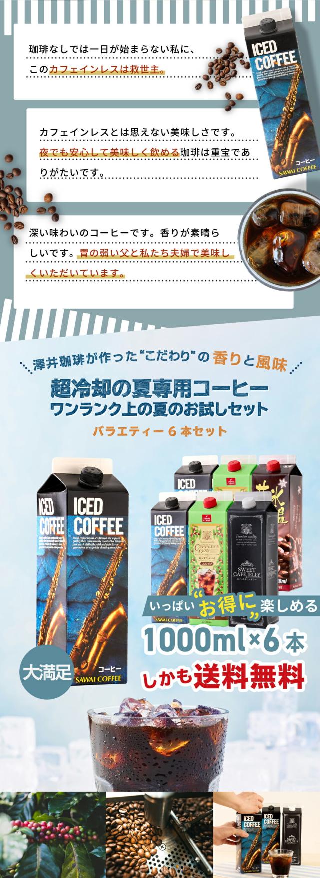 【澤井珈琲】送料無料 ワンランク上の夏のお試しセット リキッド 1,000ml4種6本