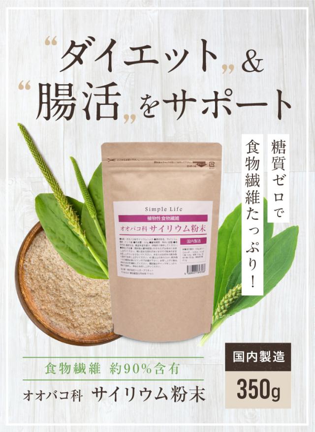 サイリウム粉末(オオバコ)350gPlantago ovata 国内製造 送料無料 植物性食物繊維 サイリウムハスク
