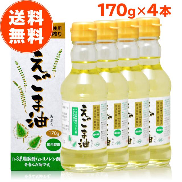 えごま油 朝日 170g 4本 セット エゴマ油 えごま えごまオイル オメガ3 油 脂肪酸 健康 食品 国内製造 低温圧搾 無添加 荏胡麻油 コールドプレス おすすめ 送料無料 お歳暮 内祝い ギフト 出産祝い 朝日えごま油
