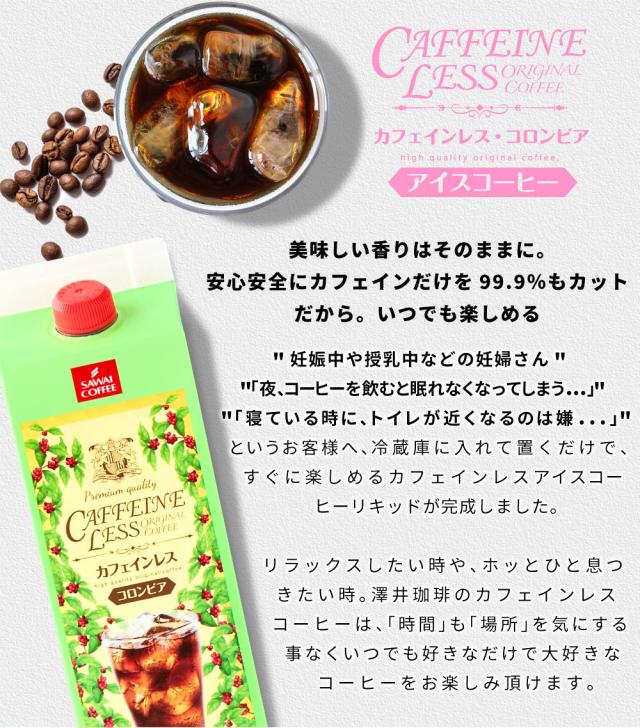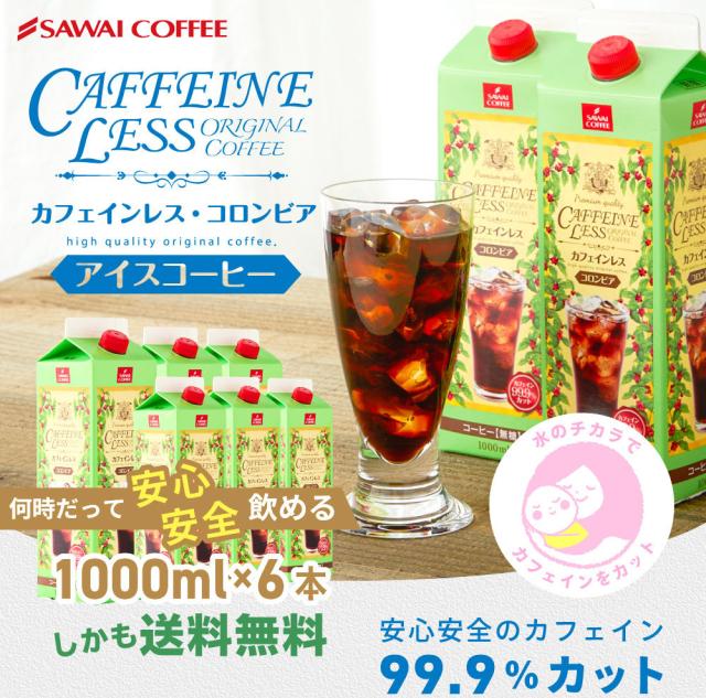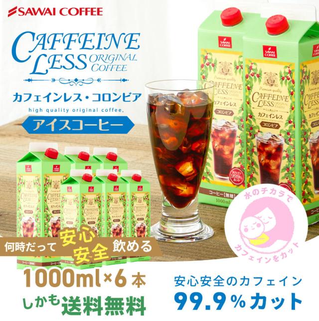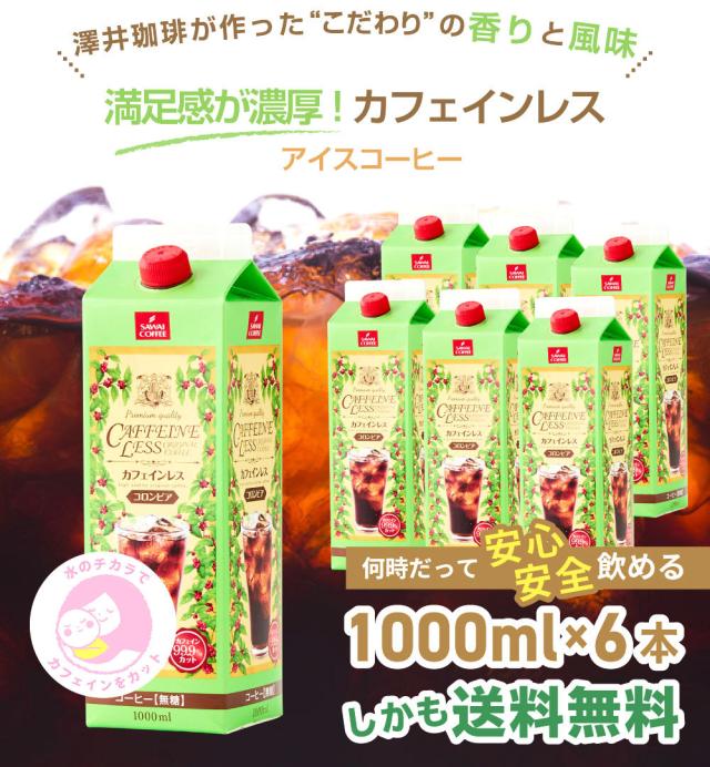 【澤井珈琲】 送料無料 カフェインレス アイスコーヒー リキッド 1000ml×6本 デカフェ