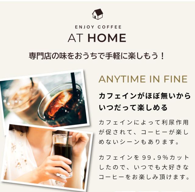 | こんな方にオススメです | 妊娠中や授乳中の方: カフェインを避けたいけれどコーヒーを楽しみたい方に特におすすめです 手軽に美味しいアイスコーヒーを楽しみたい方:冷蔵庫に常備しておいて、いつでもすぐに飲める手軽さが人気です |