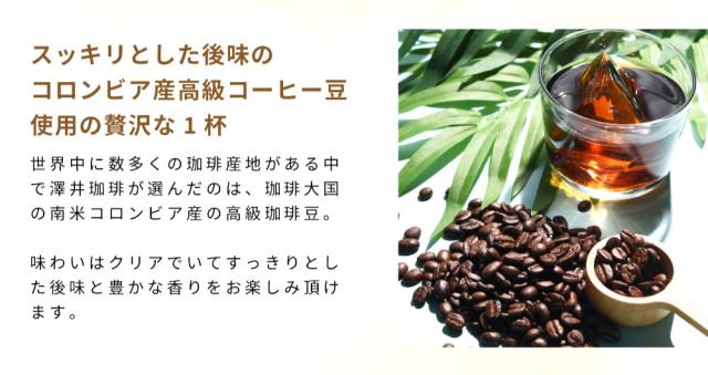 | カフェインを99.9%カットしながらも、豊かな香りと美味しさをそのまま保ったコロンビア産高級豆を使用したアイスコーヒーです。カフェインを気にせず、いつでもどこでもリラックスしたい時に楽しめる商品です。 1. カフェインを気にせず楽しめるアイスコーヒー このカフェインレス・コロンビアアイスコーヒーは、カフェインを99.9%カットしていますが、味わいや香りを犠牲にしていません。妊婦さんや授乳中の方、また「夜にコーヒーを飲むと眠れなくなる」という方でも安心して飲むことができます。冷蔵庫に入れておけば、いつでもすぐに楽しめるので、忙しい日常の中でホッと一息つきたい時に最適です。コーヒータイムが好きな方には特におすすめです。 2. 高品質なコロンビア産コーヒー豆使用 澤井珈琲が選んだのは、コーヒー大国である南米コロンビア産の高級コーヒー豆です。この豆は、スッキリとした後味と豊かな香りが特徴で、アイスコーヒーとして最高の一杯を提供します。澤井珈琲が手掛けることで、コロンビア豆本来のクリアな味わいをしっかりと引き出し、リキッドに仕上げています。味にも香りにも妥協せず、満足感の高い一杯をお届けします。 3. 身体に優しく、リラックスできる味わい カフェインレスでありながら、素材の美味しさをそのまま楽しめるのがこの商品の大きなポイントです。使用されるのは「お水」だけで、他の化学的な方法を使わずにカフェインを取り除いているため、安心して飲むことができます。ホッと一息つきたい時に、このアイスコーヒーは身体にも優しく、リラックスしたひとときを提供してくれます。カフェインを気にせず美味しくコーヒーを楽しみたい方におすすめです。 | |