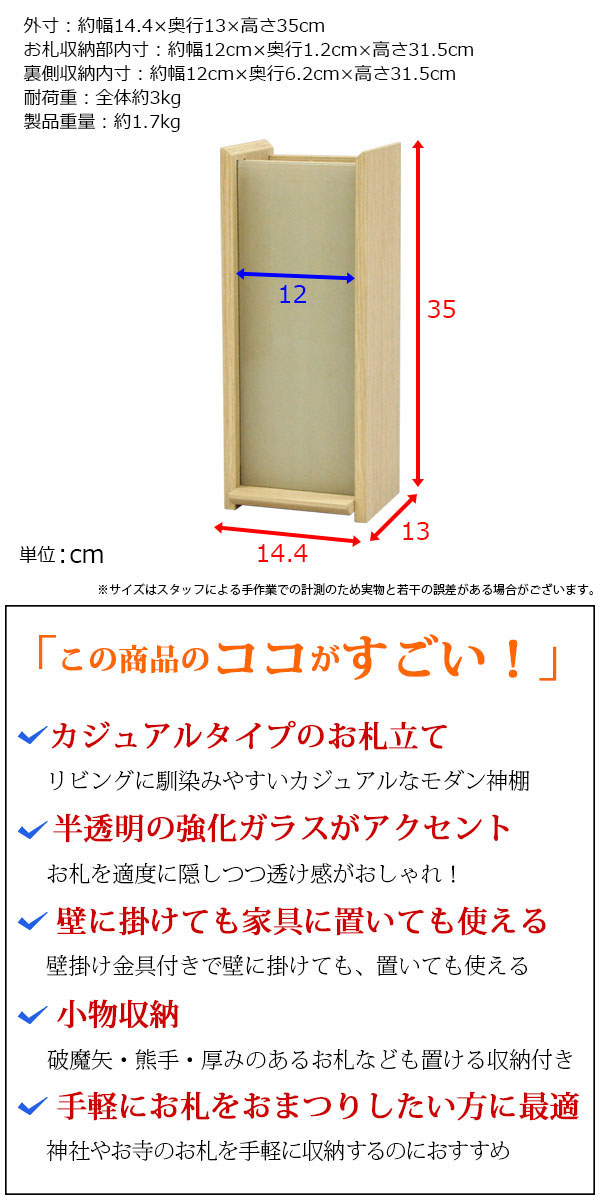 幅約14cm/奥行約13cm/高さ約35cm/モダン神棚/壁掛け
