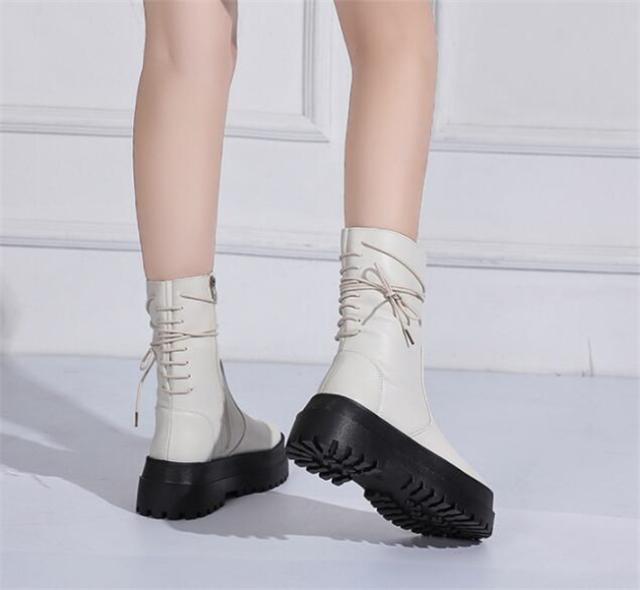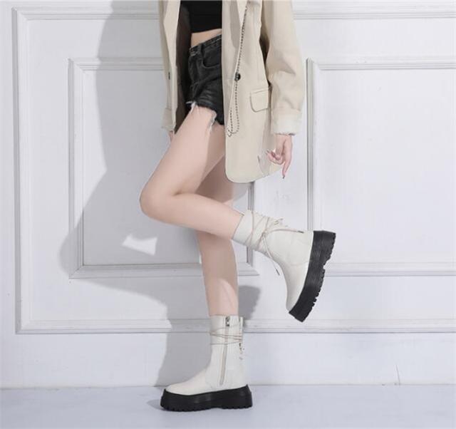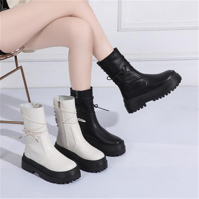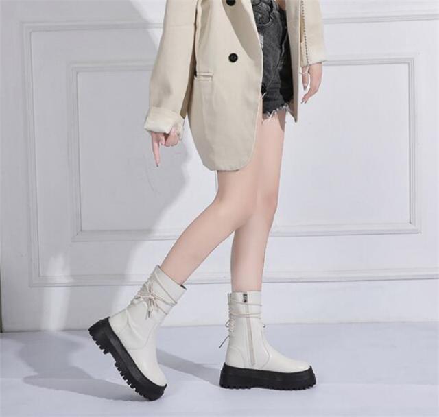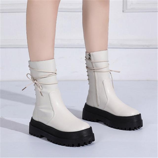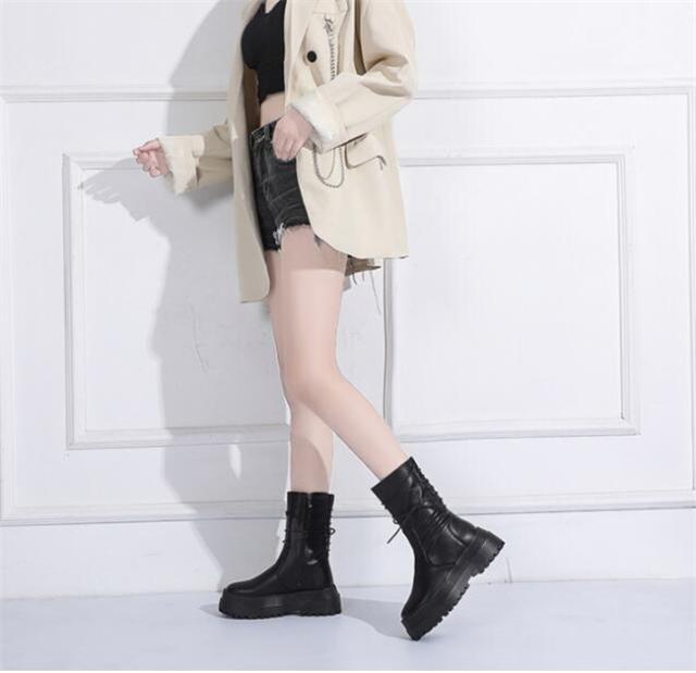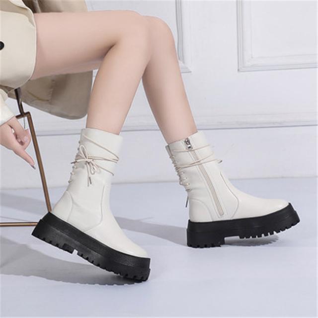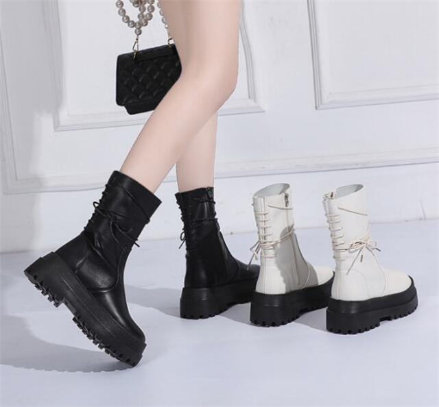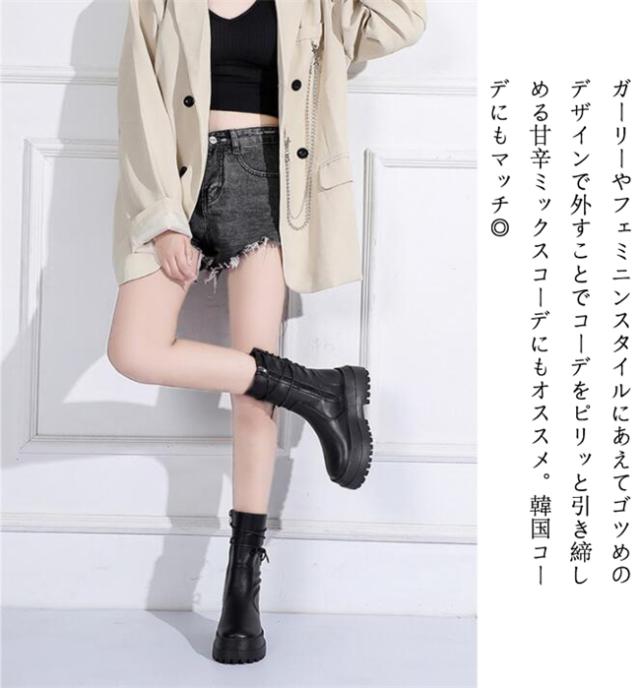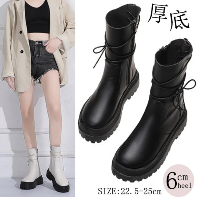 ショートブーツ 太ヒール レースアップ 厚底ハイヒール 美脚 太めヒール ミドル丈 ショートブーツ 厚底 レディースシューズ ブーツ 秋冬靴 歩きやすい 秋冬 スムース カジュアル 大きいサイズ