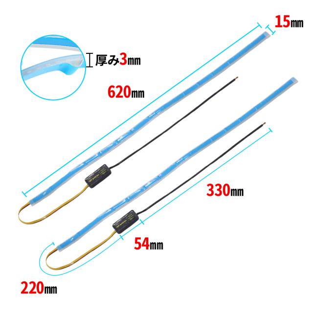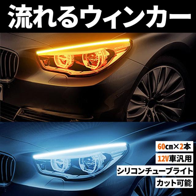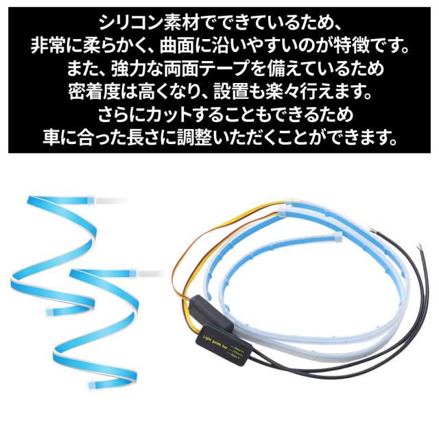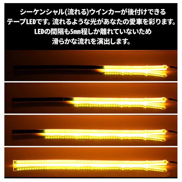 シーケンシャルウインカー 流れるウインカー LED テープライト 12V 60センチ テープLED 2本入り シリコン 薄型 切断可能