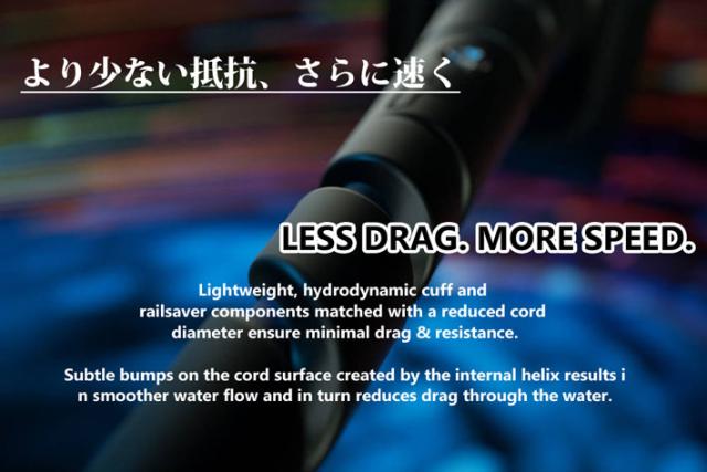 ◆ヘリックスのテクスチャード加工されたコード表面は、よりスムーズな水の流れを生み出し、抗力を低減します。
