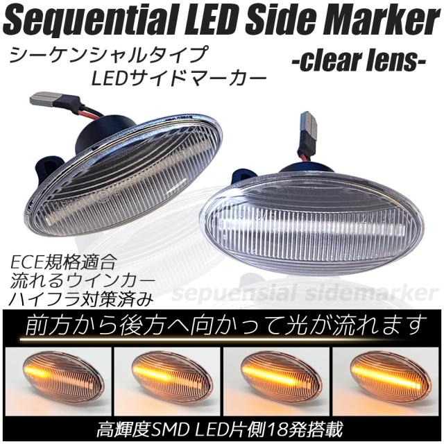 LED シーケンシャル サイドマーカー クリアレンズ 流れるウインカー ハイフラ防止抵抗内蔵 流れるウィンカー サイドウインカー agesugi_ssp