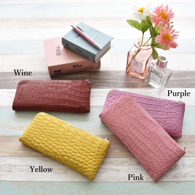 新作 長財布 L字ファスナー レディース メンズ クロコダイル 本革 薄型 スリム ワニ革 財布 軽量 レザー L字 パープル 紫 イエロー 黄色 シンプル 軽い おしゃれ 鰐革 大容量 収納 薄い 大人 上品 女性 男性 婦人 人気 開運 一粒万倍日 金運 風水 ギフト 送料無料