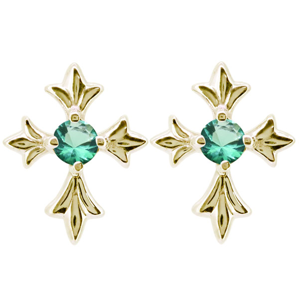 クロス ピアス 18k メンズ 十字架 エメラルド 誕生石 5月 スタッドピアス