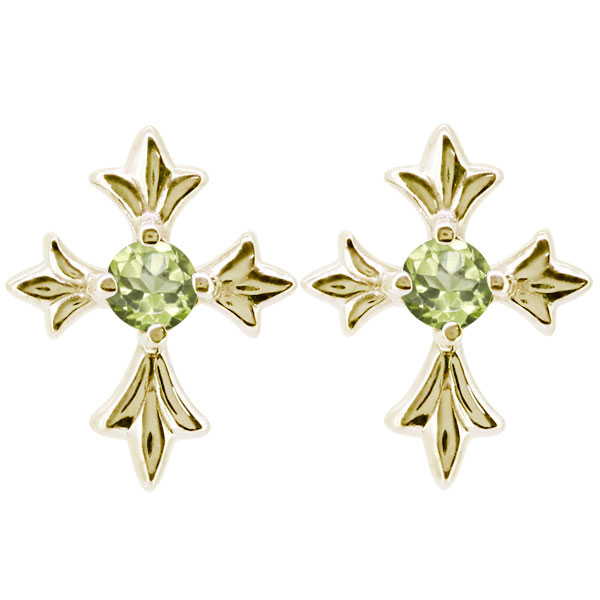 メンズ ピアス クロス 十字架 8月誕生石 ペリドット 10金 10k スタッドピアス