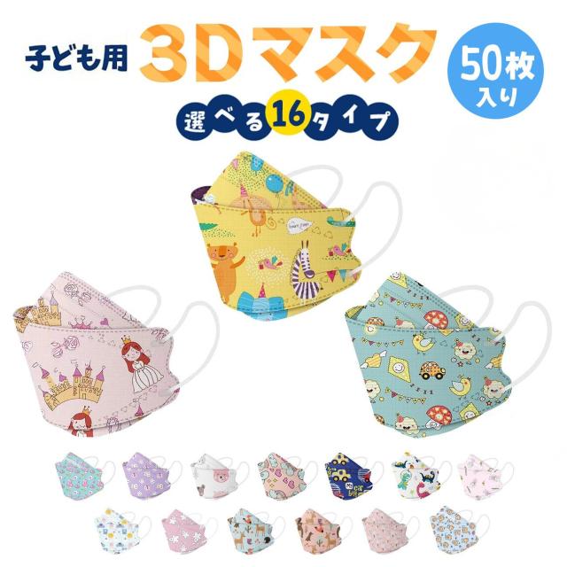 子供用 立体マスク 不織布 50枚 かわいい 3D ウイルス マスク mask カラー 全16種 携帯 キャラクター 使い捨て 恐竜 動物 車 プリンセス 女の子 男の子 子ども 衛生 韓国デザイン 送料無料 推し活 推し活グッズ
