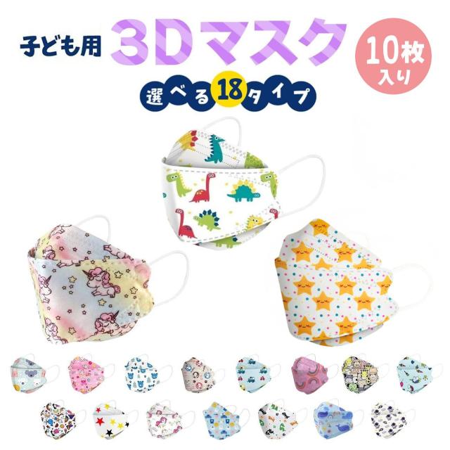 【即納】子供用 立体マスク 不織布 10枚 かわいい 3D ウイルス マスク mask カラー 全18種 携帯 キャラクター 使い捨て 恐竜 プリンセス 乗り物 女の子 男の子 衛生 韓国デザイン 送料無料
