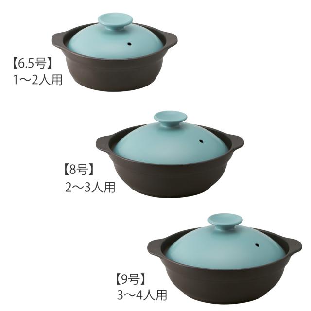 1〜2人用にちょうどいい6.5号サイズの土鍋です。軽量なので、鍋に料理を入れた状態でも無理なく持ち上げることができます。IHはもちろん、直火(ガスコンロ)との併用もでき、電子レンジやオーブンでも使えるので様々なメニューが楽しめます。