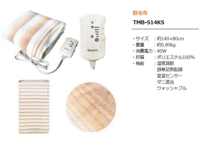 電気敷毛布 MORITA TMB-S14KS 140×80cm 洗える敷毛布 電気毛布 電気しき毛布 ホット毛布 温熱毛布