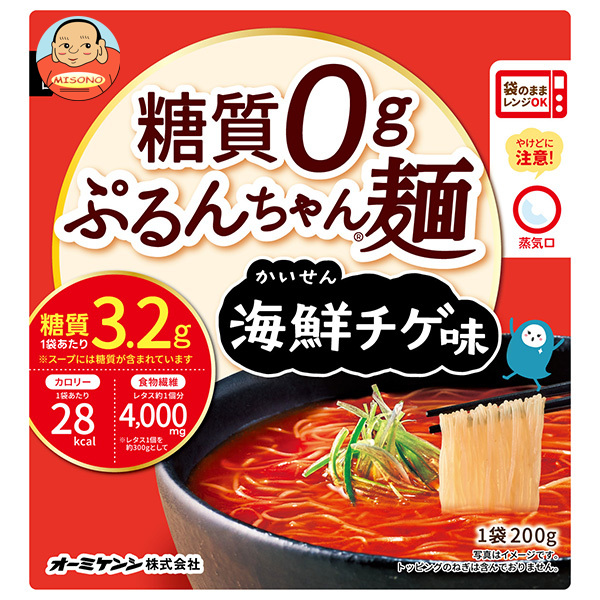 オーミケンシ 糖質0g ぷるんちゃん麺 海鮮チゲ味 200g×12袋入| 送料無料 レトルト 即席 ダイエット食品 海鮮 チゲ