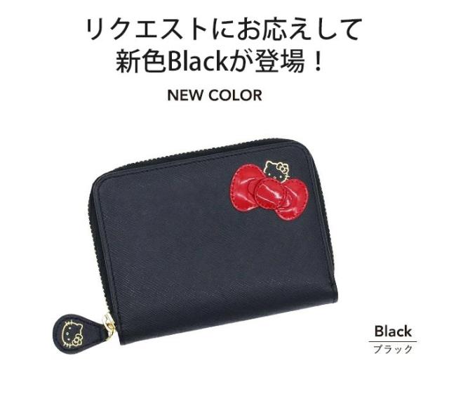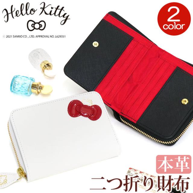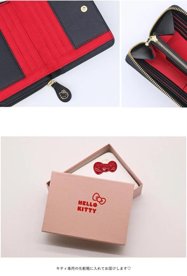 財布 レディース Hello Kitty ハローキティ 二つ折り財布 キティ キティちゃん 二つ折り 折財布 レザー お財布 高級 革財布 本革財布 女性 女の子 人気キャラクター ジッパー財布 大人 かわいい リボン 本革 サイフ ブラック 黒 上品 箱入り プレゼント ギフト お祝い 12161