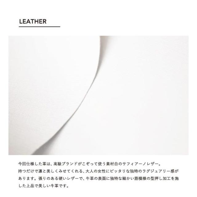 本体は型押しレザーでハリがあり、汚れや傷がつきにくい仕様です。随所にあしらわれたゴールドが上品さを底上げ!