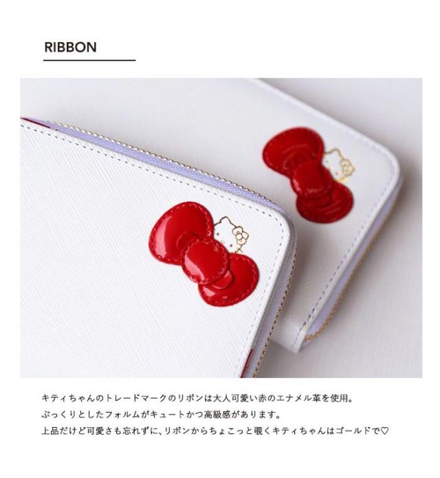 キティちゃんのトレードマークのリボンは大人可愛い赤のエナメル革を使用。ぷっくりとしたフォルムがキュートかつ高級感があります♪