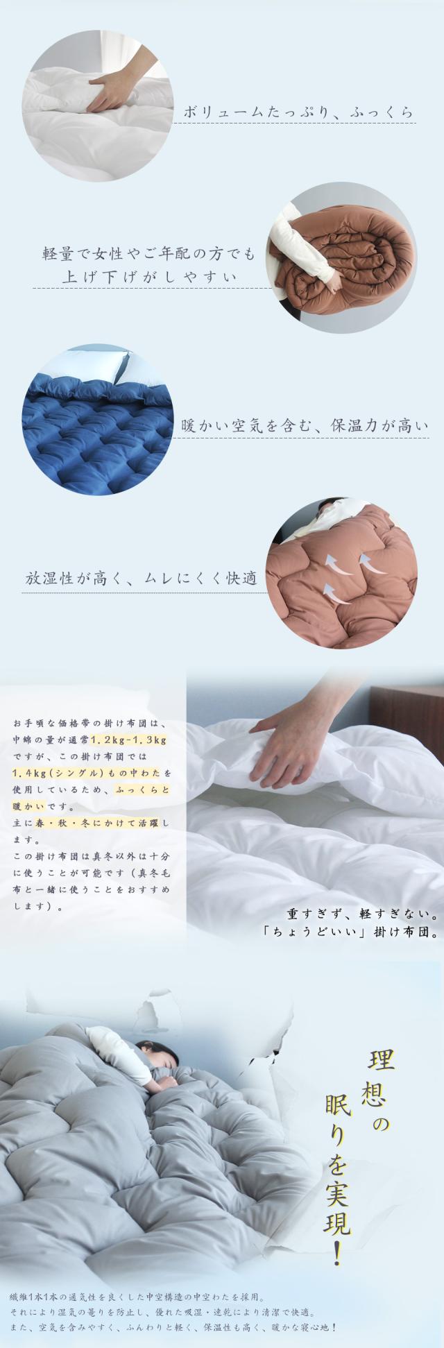 掛け布団 シングル 冬用掛け布団 掛ふとん オールシーズン対応の掛けぶとん 軽量
