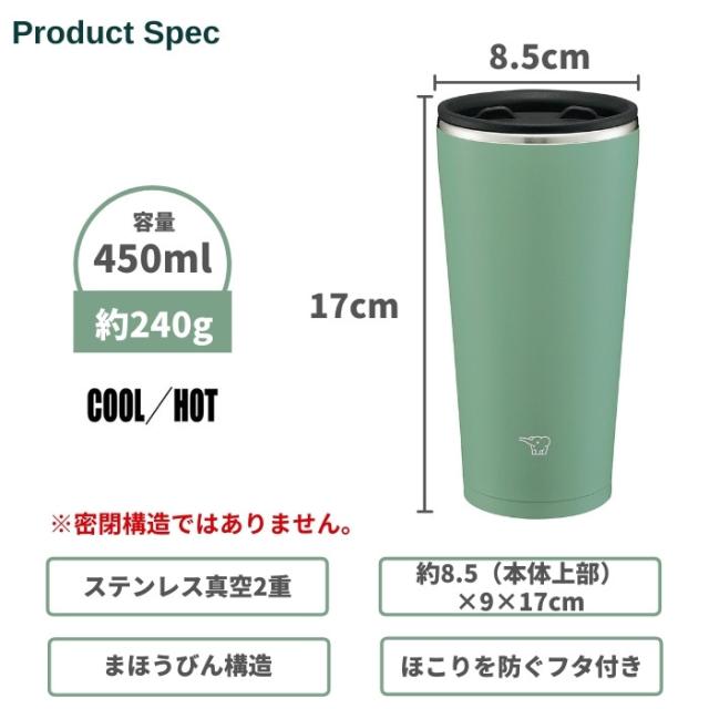 ・象印タンブラー2個セット蓋付きステンレス保温保冷450mlSX-FA45コーヒービール水筒ZOJIRUSHI