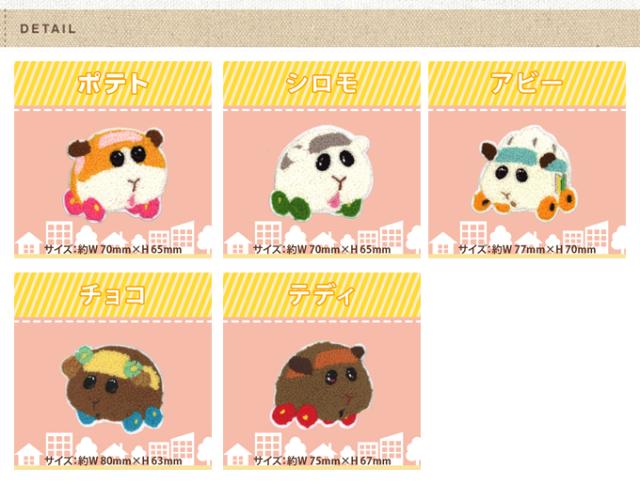 【ポテト】約W 70mm×H 65mm 【シロモ】約W 70mm×H 65mm 【アビー】約W 77mm×H 70mm 【チョコ】約W 80mm×H 63mm 【テディ】約W 75mm×H 67mm |