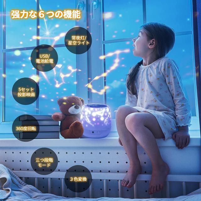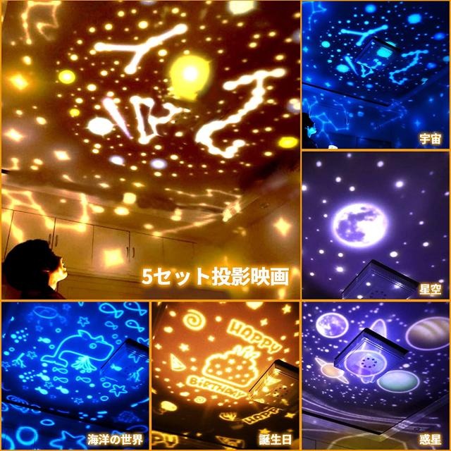 プラネタリウム 家庭用 プロジェクター 5in1 寝かしつけ スタープロジェクターライト ベッドサイドライト USB給電 電池使用兼用 360°回転 多色変更可能 3段階輝度 5投影モード 天井 壁 星空 卓上ライト 出産祝い クリスマスプレゼント 誕生日