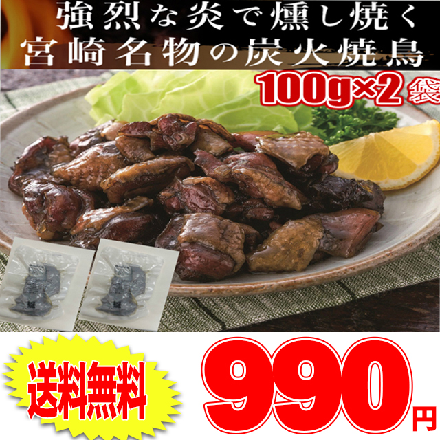 日向屋 鶏炭火焼 100g×2袋セット 日向屋オリジナル塩胡椒 にんにく ローストオニオン で味付け炭火焼 /ネコポス