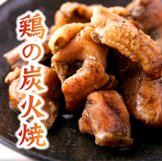 こうして出来上がった鶏の炭火焼は、見た目は黒く、しかしながら口中にうまみと特有の香り広がる一品となっております