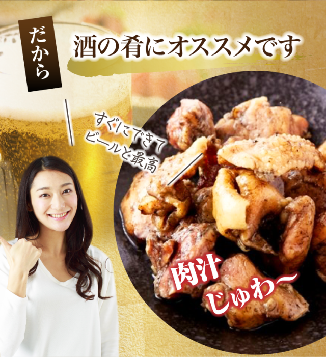 鶏肉(国産)、塩こしょう(小麦・乳成分を含む)、ソテーオニオン(大豆を含む)、おろしにんにく