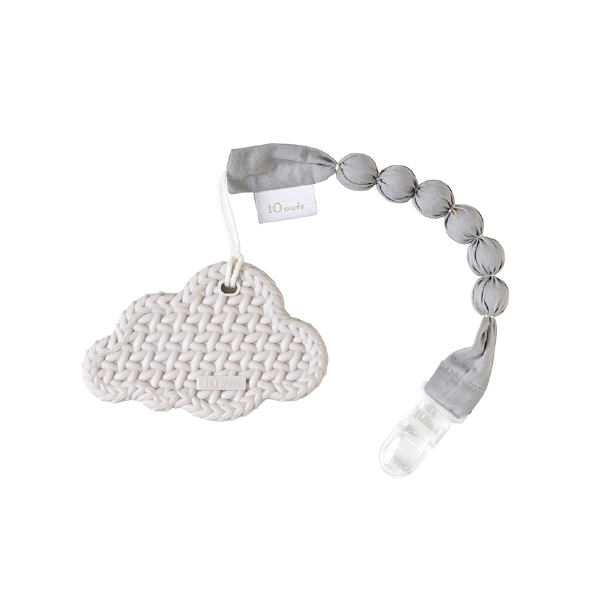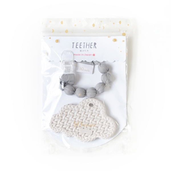FICELLE フィセル - 10mois ディモア TEETHER 歯がため クラウド ホルダー付き グレー 日本製 おしゃぶりクリップ おしゃぶりホルダー ティーザー 食洗機OK