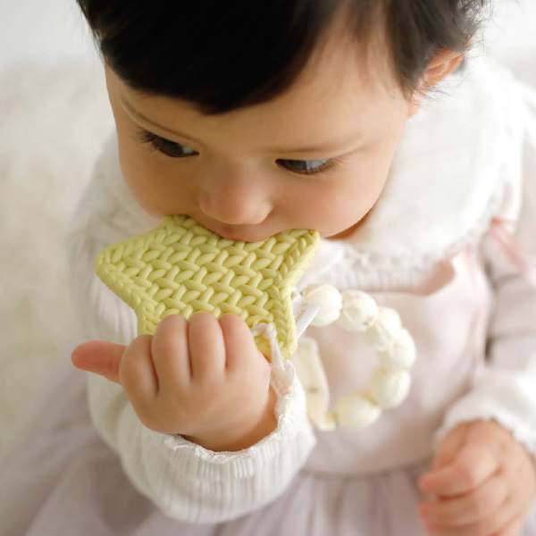 毛糸で編んだような凹凸が赤ちゃんの歯の生え始めのムズムズ感を解消します。