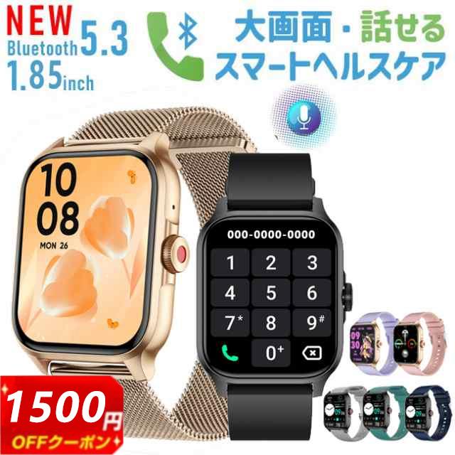 ☆クーポンで3480円☆スマートウォッチ 日本製センサー 2025進化版 1.85インチ画面 健康管理 心拍数 血中酸素Bluetooth5.3 着信通知 運動管理 歩数計 睡眠検測 レディース メンズ IP68防水 送料無料 誕生日 プレゼント