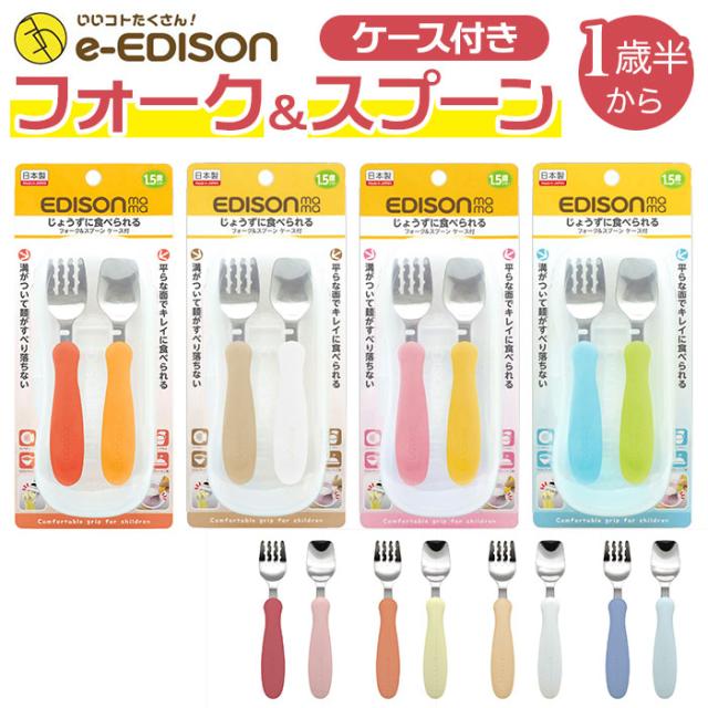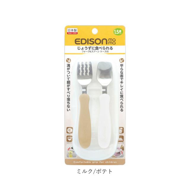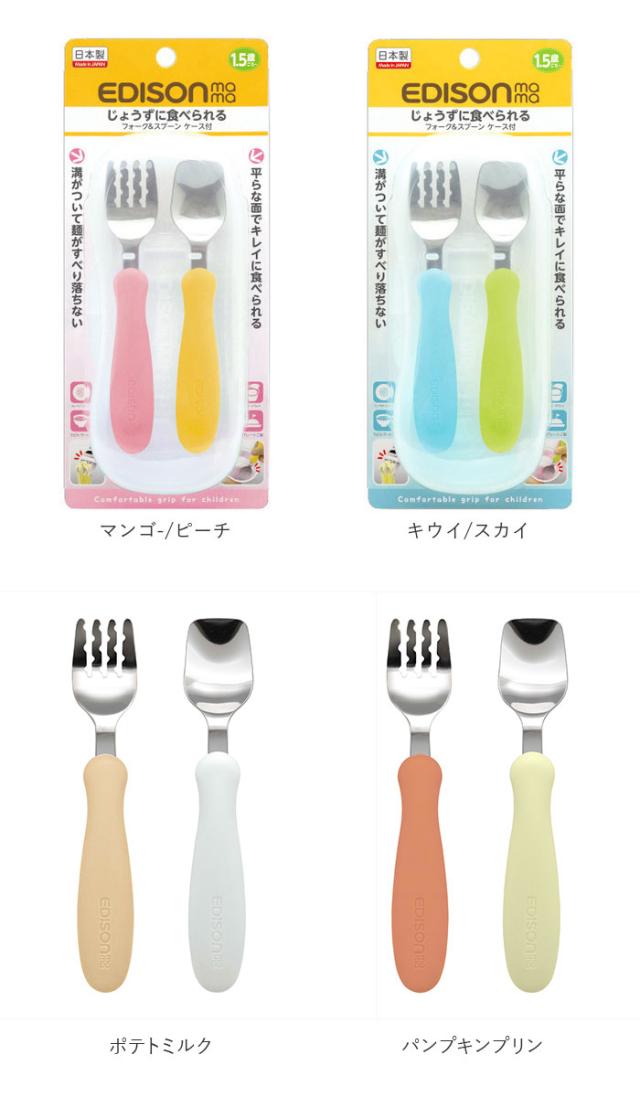 スプーン フォーク セット 子供 通販 ブランド EDISONmama エジソンママ EDISON エジソン 専用ケース付き 子供用 子ども こども ベビー食器 カトラリー じょうずに食べられる 麺が滑り落ちない パンプキン&キャロット ミルク&ポテト マンゴ&ピーチ キウイ&スカイ 保育園