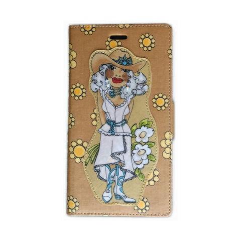 ローラライ iPhone 11 マルチ(多機種)対応 手帳型 フリップタイプ スマホケース カウガール × フラワーブラウン G ハンドメイド デザイン 送料無料