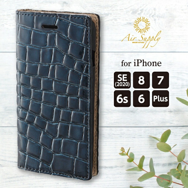 iPhoneSE(第2世代) iPhone8 iPhone7 iPhone6s iPhone6 8Plus 7Plus 6sPlus 6Plusフリップケース アルミクロコ:ネイビー 送料無料