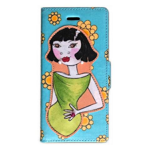 ローラライ iPhoneSE(第2世代) 11 iPhone8 iPhone7 iPhone6s iPhone6 マルチ(多機種) 対応 手帳型 フリップタイプ スマホケース アッパーボディ × フラワーブルー H ハンドメイド デザイン 送料無料