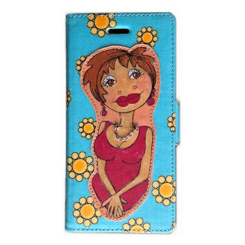 ローラライ iPhoneSE(第2世代) 11 iPhone8 iPhone7 iPhone6s iPhone6 マルチ(多機種) 対応 手帳型 フリップタイプ スマホケース アッパーボディ × フラワーブルー I ハンドメイド デザイン 送料無料