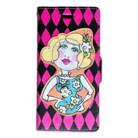 ローラライ iPhoneSE(第2世代) 11 iPhone8 iPhone7 iPhone6s iPhone6 マルチ(多機種) 対応 手帳型 フリップタイプ スマホケース アッパーボディ × ピンクダイヤ G ハンドメイド デザイン 送料無料