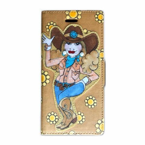 ローラライ iPhoneSE(第2世代) 11 iPhone8 iPhone7 iPhone6s iPhone6 マルチ(多機種) 対応 手帳型 フリップタイプ スマホケース カウガール × フラワーブラウン B ハンドメイド デザイン 送料無料
