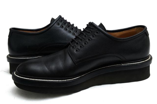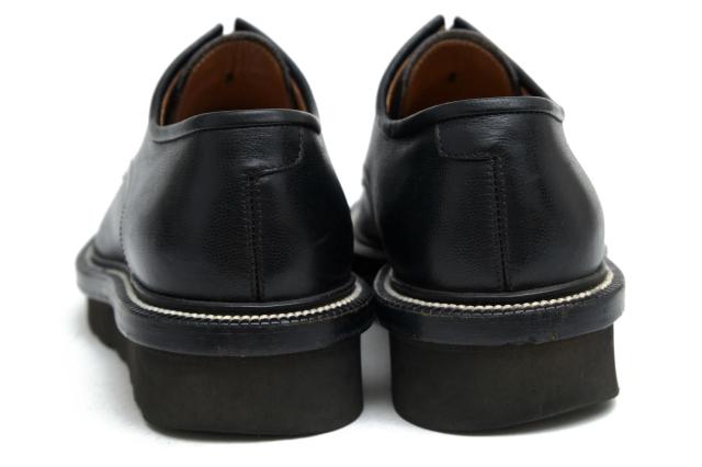 シューホールを2列デザインしたエッジの聞いたデザイン。マッケイ製法で仕上げた後、ウェルトとアウトソールで挟み込み、出し縫いで縫い上げるブラックラピド製法を採用。アッパーには、キャビアスコッチレザーを用いており、ウェルト部分のステッチがアクセントになっています。