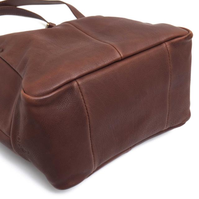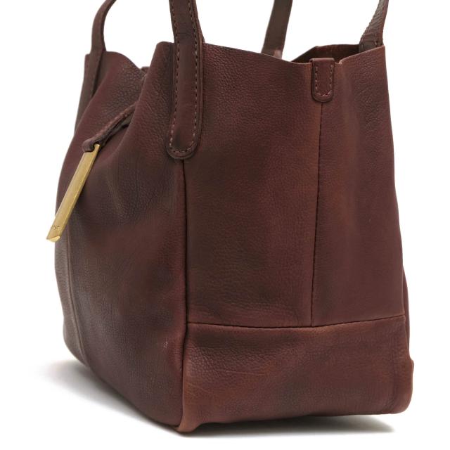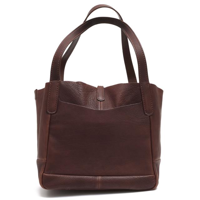 しなやかなタンニンなめし牛革と開口部を留める細ベルト&編み込みのベルトループ、アンティークテイストのゴールド金具が絶妙なアクセントになっています。広めのマチ付きで収納力もあり普段使いにはもちろん、通勤・通学にもオススメです。