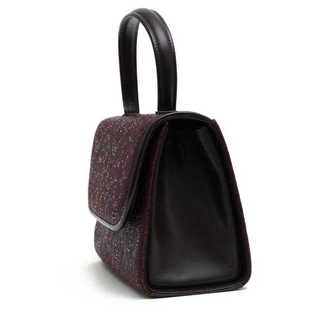 持ち手が一本手のころんとした形のフォーマルバッグ。しっかりとした仕立て、デザインなんので冠婚葬祭としてはもちろんのこと、お出かけ用としても使えます。結婚式等の場面にもぴったりです。