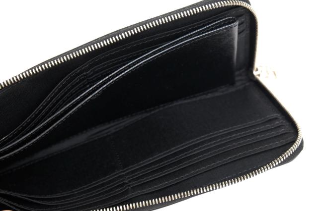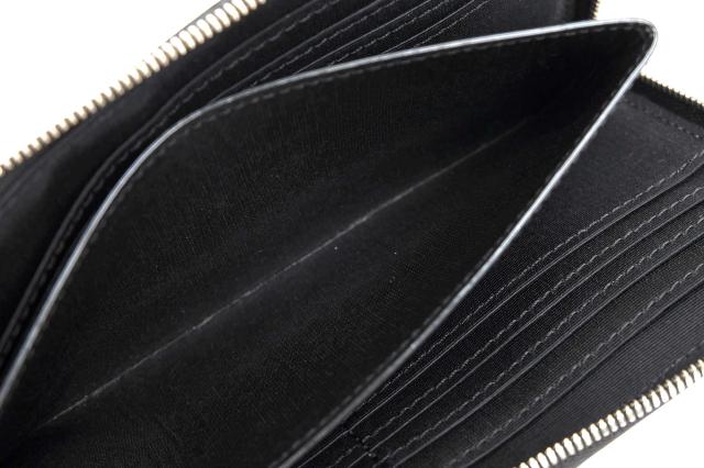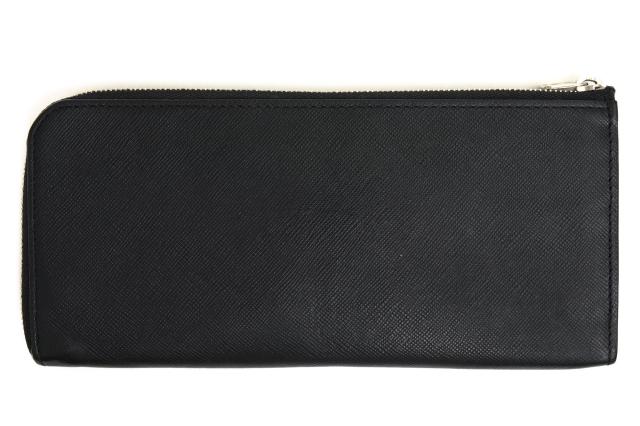 牛革に型押しを施し耐久性のある仕上がりのL字ファスナー仕様。側面のマチが小さいながらも、お札やカードポケット、中央にはファスナー無しの小銭入れの収納スペースを設け、ファスナーを開いたときに視認性に優れているのも特徴です。またファスナーで守られているので、大切なお金やカード類を落としてしまうのを防止し、安全性の高いデザインです。