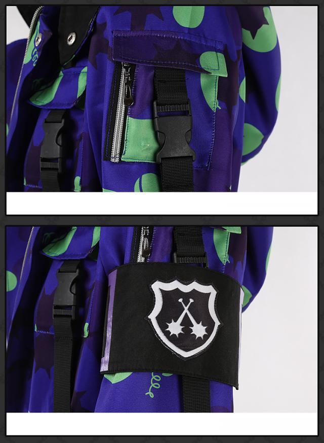 セート内容:コート、インナー、ズボン、胸の帯、ベルト、カバン、手袋、膝の鎧、腕章、尻尾