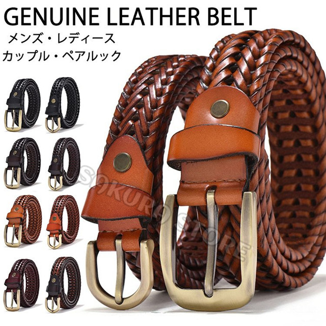 ベルト メンズ レディース レザー 本革 編み込み メッシュ ペアルック おしゃれ カジュアル ビジネス